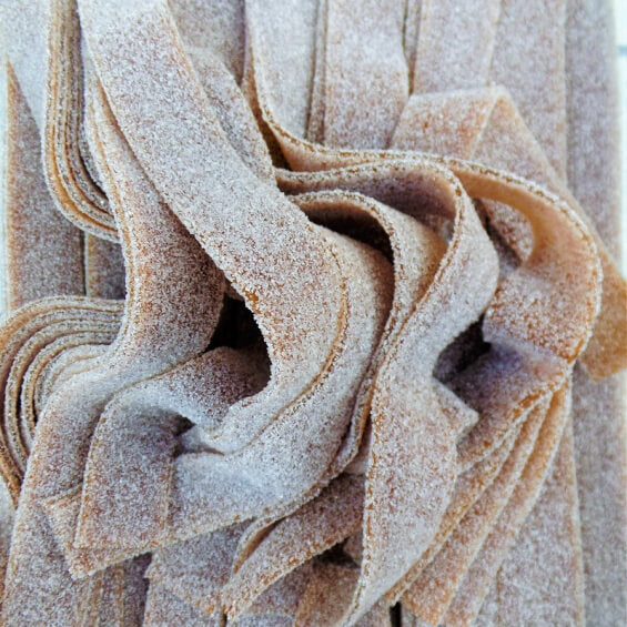 Ingrédients : sucre, sirop de glucose-fructose, farine de BLÉ (GLUTEN), eau, acidifiants (acide citrique, acide malique), humectant (sirop de sorbitol), graisse de palme*, amidon de mais, émulsifiant (mono et et diglycérides d'acides gras) arôme naturel, colorant (cara