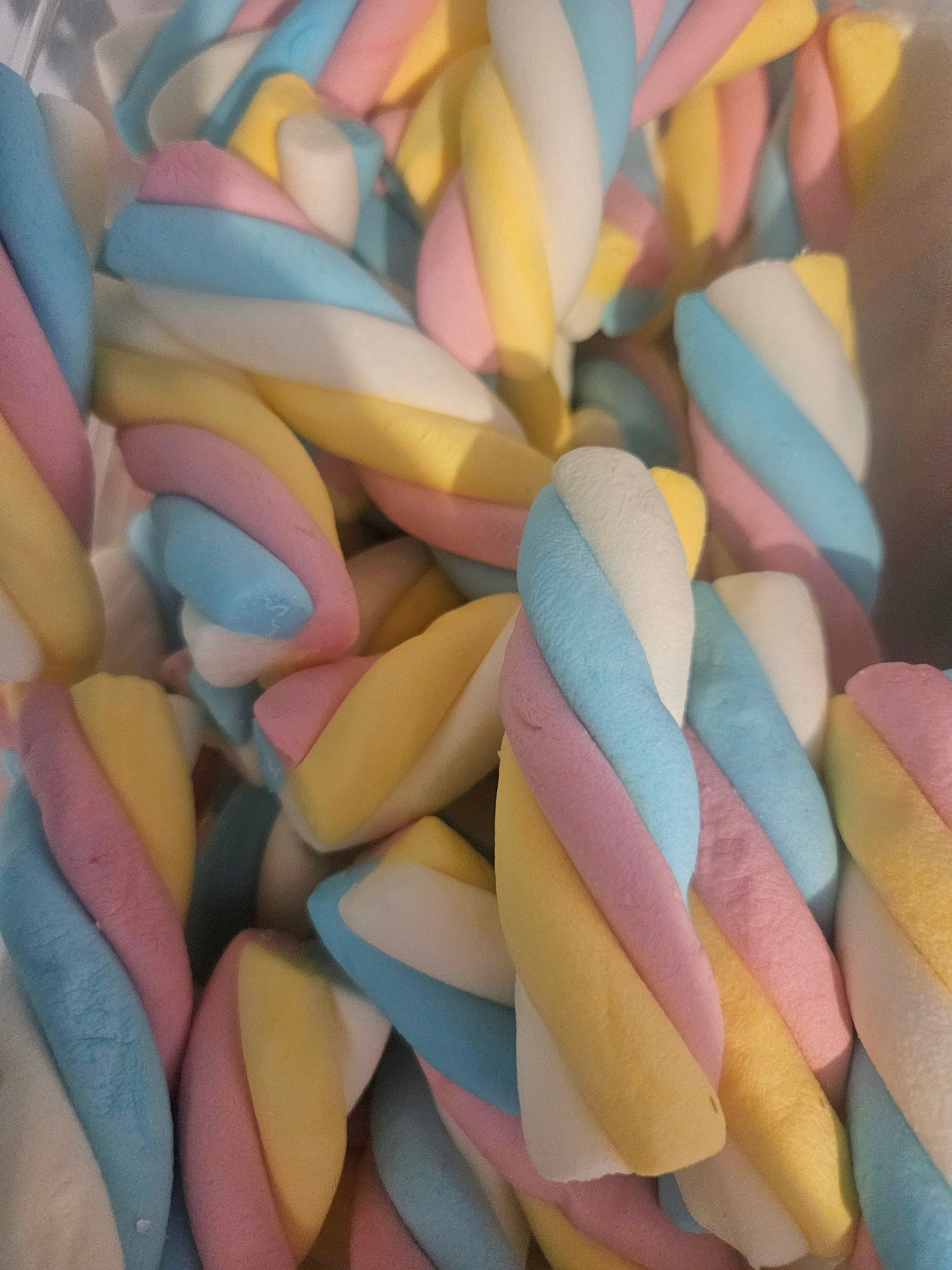 Sirop de glucose et de fructose, sucre, gélatine, eau, humectant : E420, arômes, amidon, colorants : E100, E120, E133.